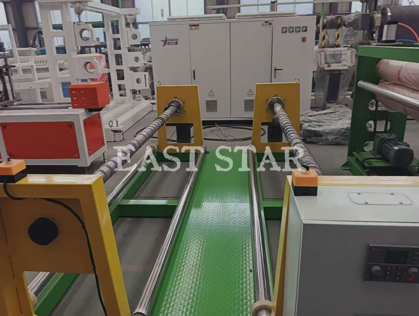 Apa sebenarnya garis penyemperitan tali pinggang pembuangan baja 2.4m yang digunakan? Barisan pengeluaran ini terus menghasilkan gulungan lembaran plastik rata dengan lebar standard 2.4 meter melalui proses lebur suhu tinggi, pengacuan penyemperitan, penyejukan dan pembentukan, dan penggulungan. Lembaran ini kemudian diproses oleh pengeluar hiliran (seperti penggerudian dan tenunan) untuk membentuk tali pinggang penghantar pembersihan baja yang tahan lama, yang digunakan secara meluas dalam sistem sangkar yang disusun dalam ayam, itik, dan rumah babi.