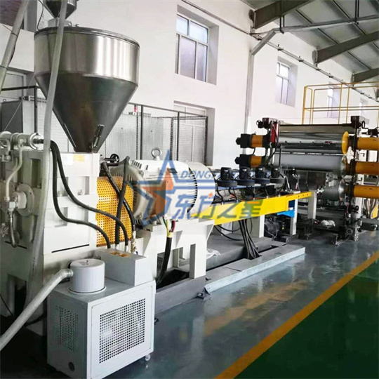Peralatan penyemperitan geogrid digunakan untuk menghasilkan geocells. Langkah pertama produk ini adalah untuk menghasilkan lembaran, dan kemudian lembaran dipotong dalam talian, dan kemudian lembaran plastik disambungkan melalui