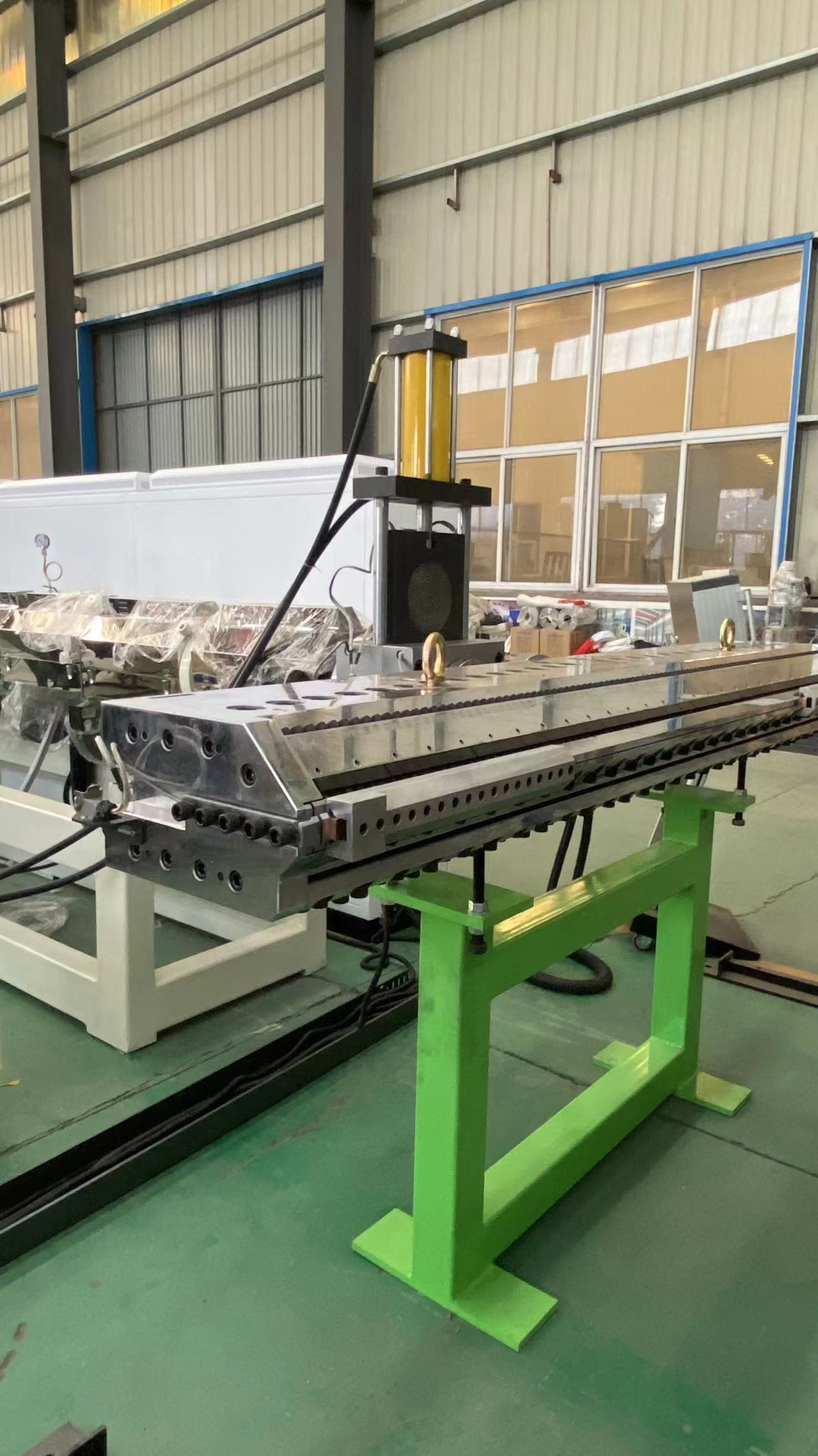 Barisan pengeluaranKepala mati komposit mempunyai struktur berbentuk T dan dihasilkan dari keluli acuan P20, dengan kekasaran permukaan saluran aliran RA 0.05 μm. Kepala mati mempunyai sembilan zon pemanasan, kuasa pemanasan sebanyak 27 kW, dan lebar pengeluaran maksimum 1,300 mm, membolehkan kawalan tepat ketebalan dan kebosanan lapisan teras PE yang diekstrusi. Kalender tiga roll mempunyai dimensi permukaan kerja yang berkesan sebanyak 500 × 1,500 mm. Kelajuan garis boleh diselaraskan dengan tepat dari 0.5 hingga 8 m/min menggunakan sistem kawalan kelajuan pembolehubah ABB, memastikan permukaan lembaran licin.