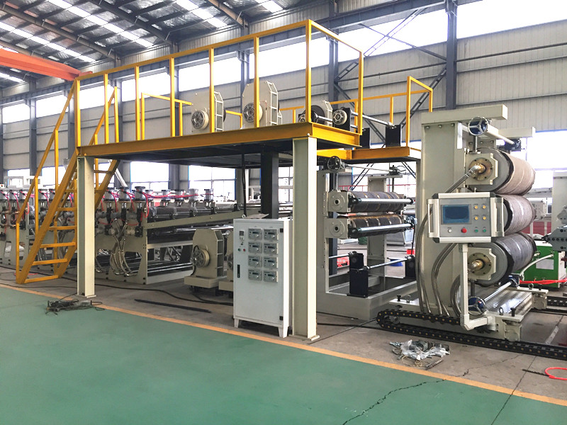 Qingdao Eaststar lengkapPE ALUMINUM-PELANGGAN PELANGGAN PELANGGANTerdiri daripada extruder tunggal-skru SJ150 × 33, mati komposit, kalender tiga roll, gegelung aluminium dua sisi, laminator terma dua, laminator terma lapan-gulung, pendirian roll penyejuk enam roll, laminator, laminator empat gulung, dan cuter. Sistem PLC membolehkan kawalan pintar seluruh baris.