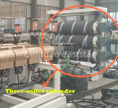 Sistem mati dariBarisan Pengeluaran Lembaran Bersama Multi-lapisan ABSMengadopsi reka bentuk saluran aliran jenis penyangkut kot, dengan lebar mati 2200mm dan dilengkapi dengan pengedar ketepatan untuk memastikan pengedaran bahan seragam di setiap lapisan. Kalender tiga roll dilengkapi dengan penggelek cermin φ450 × 2500mm, dengan kekerasan permukaan roller HRC58-62 dan ketebalan penyaduran krom 0.08mm. Reka bentuk berbilang saluran khas memastikan suhu seragam. Sistem kawalan suhu roller menggunakan air yang disucikan sebagai medium, dengan ketepatan kawalan suhu ± 1 ℃, dan dilengkapi dengan tiga pam air panas 2.2kW dan tiga set pemanas 12kW untuk menyediakan persekitaran suhu yang tepat untuk pembentukan lembaran.