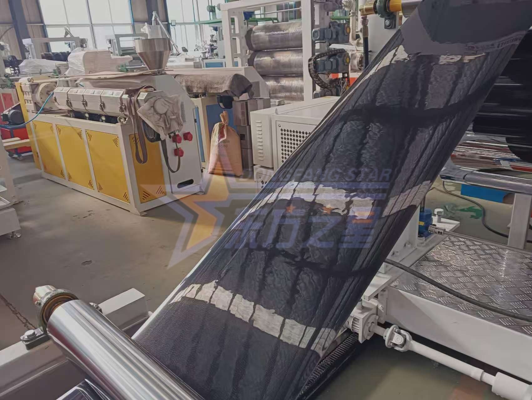 Ini dihantarBarisan pengeluaran lembaran PP/PSmempunyai prestasi unggul dan kestabilan yang tinggi. Peralatan terasnya ialah extruder tunggal SJ-65-30/1, yang nisbah 30: 1 panjang-ke-diameter memastikan plasticisasi penuh dan mencapai output stabil 60-120 kg/jam. Dilengkapi dengan ketepatan MJ-350 Flat Die, garisan pengeluaran boleh menghasilkan lembaran PP/PS dengan ketebalan 0.3-2 mm, sangat sesuai untuk dulang anak benih pelbagai saiz. Untuk memastikan kemasan permukaan lembaran yang sangat baik dan ketepatan dimensi-penting untuk pembentukan dulang berkualiti tinggi-barisan pengeluaran mengintegrasikan kalender tiga roll BF-600, dengan setiap roll dilengkapi dengan sistem kawalan suhu bebas. IniPeralatan lembaran dulang PP/PSdireka untuk menyediakan konsistensi bahan yang diperlukan untuk proses thermoforming dulang yang cekap dan automatik.
