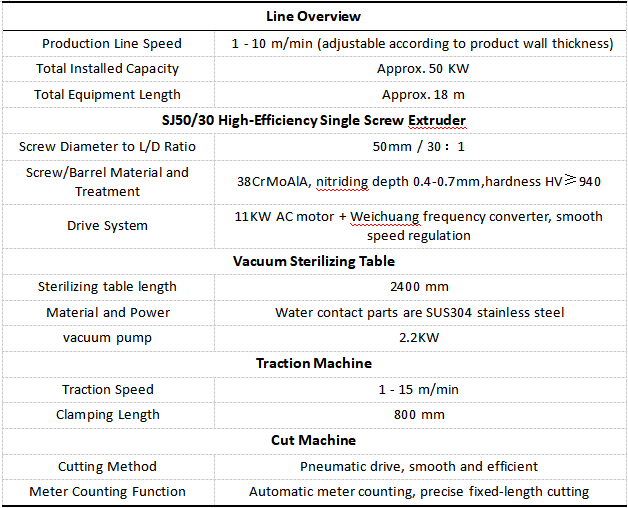 Persediaan untuk inigaris pengeluaran tiub lampuPusat di sekitar beberapa butiran peralatan utama. Di jantung duduk SJ50/30 extruder tunggal-skru. Ia mempunyai skru 50mm dengan nisbah 30 hingga 1 panjang hingga diameter. Kedua -dua skru dan laras berasal dari keluli 38crmoala nitrided, yang membantu mencairkan bahan sepenuhnya, menyimpan perkara -perkara walaupun, dan memberikan output yang mantap walaupun untuk perkara yang sukar seperti PC, PS, dan ABS.Garis pengeluaran tiub lampuPasangan motor 11 kW AC dengan penukar frekuensi Weichuang, jadi kelajuan tetap berada di bawah kawalan yang tepat. Selain itu, pengayuh vakum automatik dan pengering dehumidifier menjaga kelembapan dalam bahan mentah seperti PC dan ABS, memastikan cair tetap berkualiti tinggi untuk proses penyemperitan. Seluruh baris mendapat kawalan pusat melalui bahagian-bahagian voltan rendah Siemens dan pengawal suhu Omron, yang menjadikan segala-galanya berjalan dengan pasti.