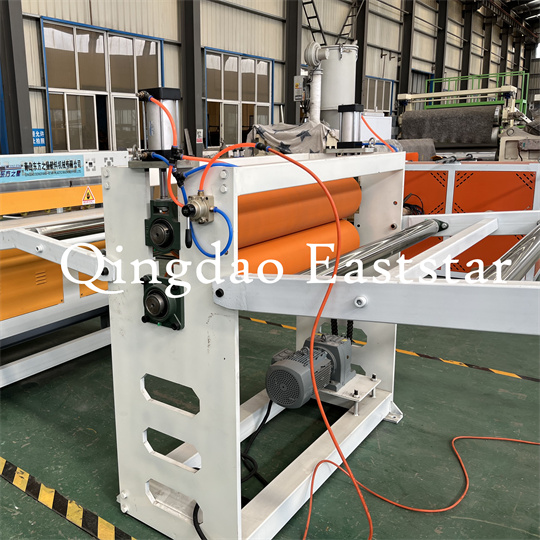 Qingdao East-Star PVC Sheet Extruder Machine: Komponen utama peralatan: Extruder Skru Tunggal, Lembaran Die, Tiga Roll Calender,