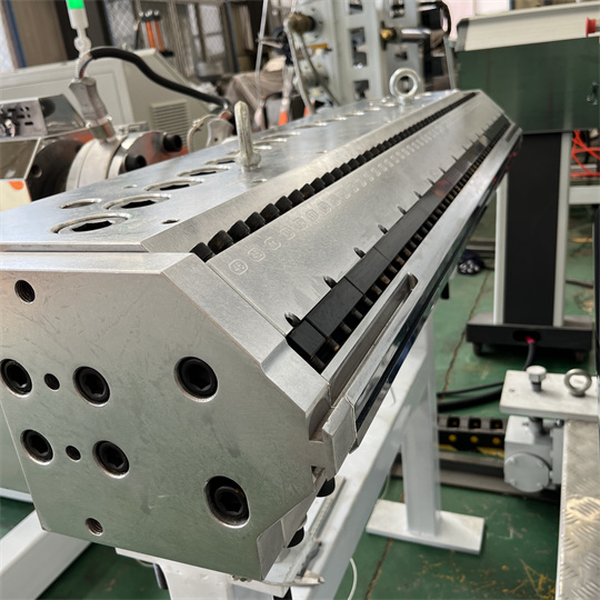 Peralatan extruder papan lampu PVC: Peralatan ini terdiri daripada extruder berkembar, acuan plat, kalender tiga gulung, pendakap penyejuk, mesin daya tarikan roller getah, pemotongan