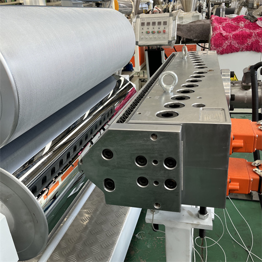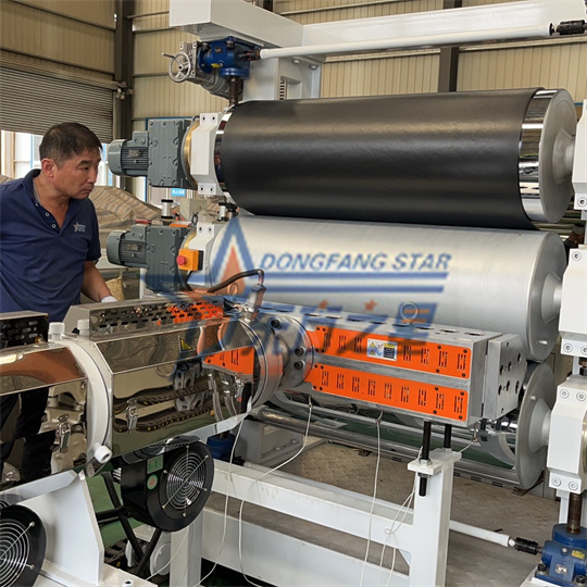 Peralatan extruder antistatik PVC lembut: Peralatan ini terdiri daripada 120 extruder skru tunggal, kalender tiga roller, pendakap penyejuk, mesin daya tarikan roller getah, mesin ricih, dan a
