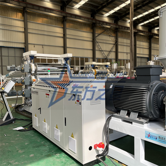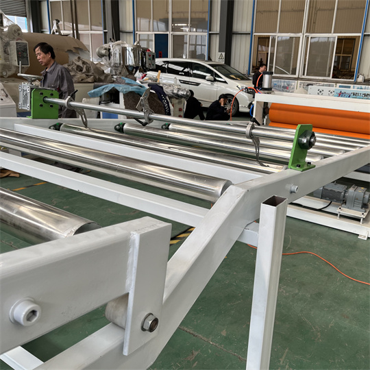 Mesin Extruder Lembaran Lembut: Peralatan ini terdiri daripada 120 extruder skru tunggal, kalender tiga roller, pendakap penyejuk, mesin daya tarikan roller getah, mesin ricih, dan a